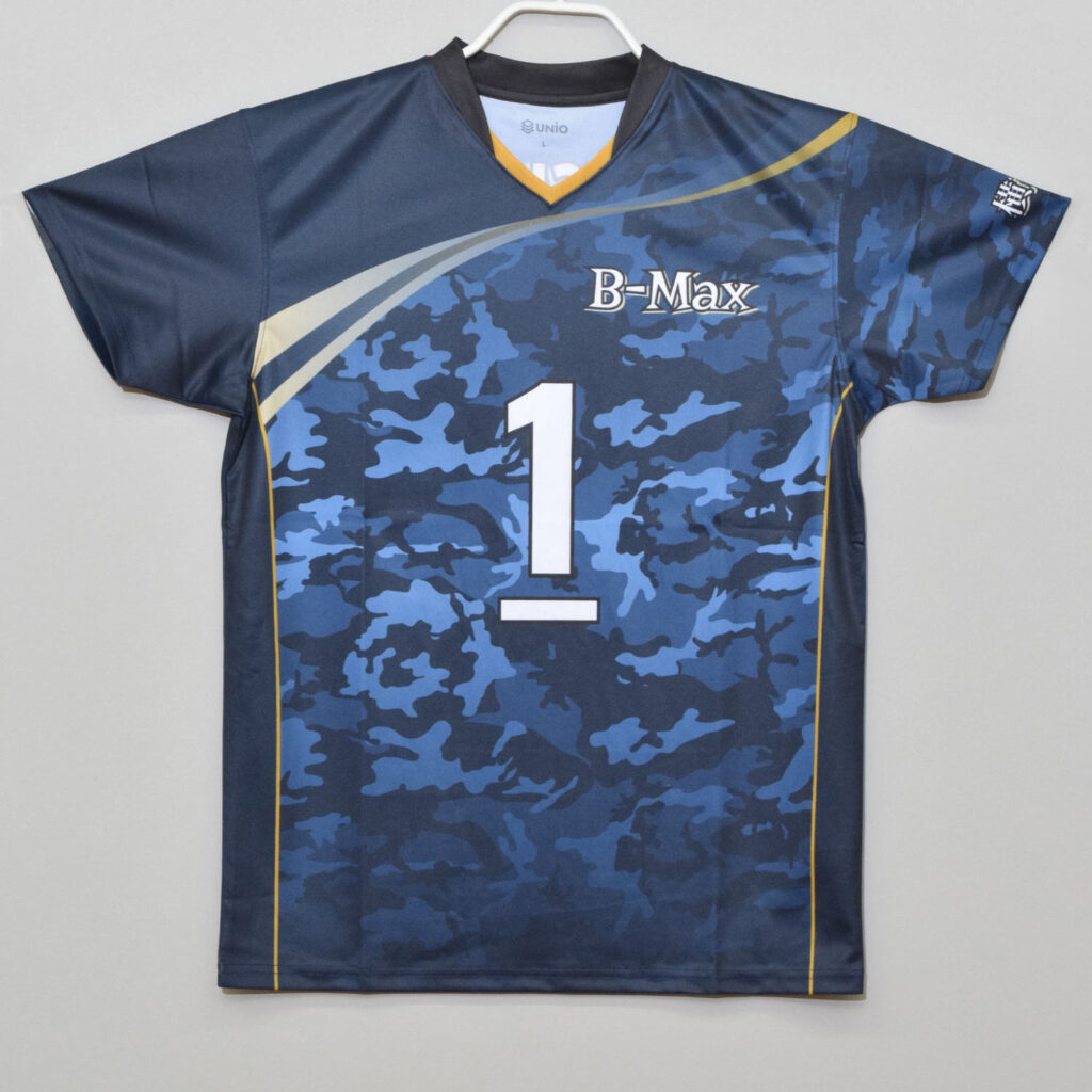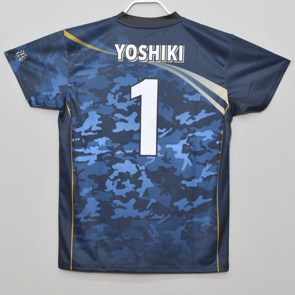 ブルー系の迷彩柄とゴールドの曲線が上品な雰囲気を醸し出す1枚