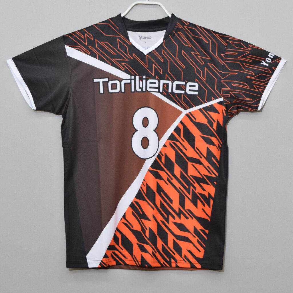 オレンジとブラックのグラデーションと幾何学模様が個性的なユニフォーム
